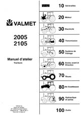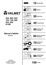 Réf:/ Valmet 05 CD Manuel d'atelier des tracteurs Valmet de types 505, 605, 655, 705, 755, 805, 855, 955, et 615M. équipés des moteurs de 3 à 6 cylindres de types, TD33DS5, TD44DS6, TD44DS7, TD44DS8 et 611D. Généralités, moteur, Electricité, transmission, Freinage, Essieu Av et direction, Châssis, cabine et système hydraulique. (456 pages) ____________