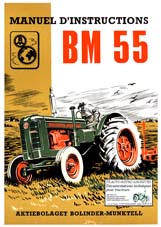 Réf:/ Bolind 023 Manuel d'instructions - N° 5255 F de 1958 - pour tracteurs BM 55. Très beau document, avec les couples de serrage du moteur, le schéma électrique + le schéma de graissage etc… en couleur pour certains. (98 pages) ____________
