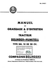 Réf:/ Bolind 002 Manuel d'instructions pour la conduite et l'entretien - N° 5140F - pour tracteur BM 10 de 20 CV. Avec schémas de graissage et électrique. (40 pages) ____________