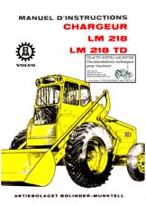 Réf:/ Bolind 201 Manuel d'atelier concessionnaire - N° FSP 2506F de 1965 - des chargeurs LM218 et LM218TD équipés du moteur 3 cylindres Volvo 1113TRS. Dans le détail ce manuel présente : généralités, spécifications, moteur, embrayage, coupleur hydraulique, inverseur de marche, boite de vitesses, arbres de roues, freins d'arbres de roues, différentiel, prise de mouvement, freins, essieu directeur et boîtier de direction, roues, circuit hydraulique. Pages couleurs des fluides, nombreuses planches et illustrations. (150 pages) ____________