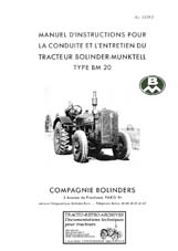 Réf:/ Bolind 004 Manuel d'instructions pour la conduite et l'entretien - N° 5139F de 1948 - pour tracteur BM 20. Très beau document, très complet, nombreuses vues et schémas, notamment de graissage et électrique. (138 pages) ____________