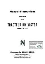 Réf:/ Bolind 024 Manuel d'instructions provisoire - N° 5225 FB de 1956 - pour tracteur BM Victor 230 équipé du moteur 1052. Schéma de câblage, schéma de graissage. (26 pages) ____________