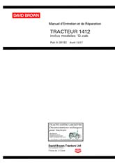 Réf:/ David 120 Manuel de réparation - N° 9-38182 de 1977 - pour le tracteur David Brown type 1412, inclus modèles "Q cab". Ce manuel présente le fonctionnement, la dépose, la repose, l'entretien, les réparations, les spécifications, données et mesures des organes suivants : le moteur à turbo compresseur, l'embrayage, le système d'embrayage hydraulique, la transmission, les réducteurs finaux, la direction et l'essieu avant, les freins, le système des freins hydrauliques, la prise de force. (82 pages) ______
