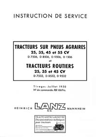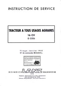 de 1958 pour les tracteurs Lanz types D5006, D5007,