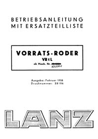 15158 de 1956 pour le tracteur Lanz type D1306. (70 pages) |