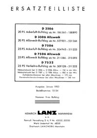 15550/I de 1957 pour les tracteurs Lanz types D5006, D5016,