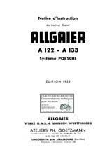 Ref Allga 002 Notice d'instruction ?ition II de 1953, pour le tracteur Allgaier A111, équipe d'un moteur diesel monocylindre 4 temps. Avec schémas électrique. (56 pages) Ref Allga 002PR en allemandListe de pièces de rechange N°TD 065/3/55/8, pour les tracteur Allgaier Porsche A111 et A111V. Document en allemand ou sont répertoriées en planches toutes les pièces détachées en planches, les références, les vis les roues tous les éléments qui composent le tracteur, y compris le moteur. En supplément notice d'instruction en français du relevage Gotec Porsche du relevage pour pont ZF A4. (118 pages) ___________