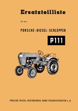 Catalogue de pièces détachées des tracteurs Porsche/diesel de type P111. Document en allemand ou sont répertoriées en planches toutes les pièces détachées en en planches, les références, les vis les écrous tous les éléments qui composent le tracteur. (110 pages)