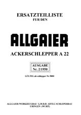 ![]() Ref Allga 011 Liste de pieces de rechange N? 2 de 1950, pour le tracteur Allgaier R22 Bouillotte ronde en allemand. (47 pages) Ref Allga 012 en allemand Notice d'entretien et de montage de la faucheuse latérale ainsi que catalogue de pièces de rechange de 1954 de la faucheuse portee Rasspe adaptable sur les tracteurs Allgaier R18, A22, R22 et A24. Document en allemand. (32 pages)