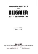 Ref :/ Allga 003 Notice d'instruction de 1952, pour le tracteur Allgaier Diesel Schlepper A12. Document en allemand. (44 pages) ___________