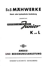 Ref Porsche 026 en allemand Notice d'entretien et de montage - N? 115 58 - de la faucheuse latérale de type S et S, TM 20228 adaptable sur les tracteurs Porsche diesel Junior types K et L. Document en allemand. (24 pages) ___________