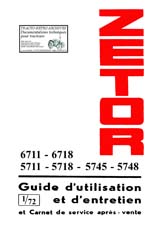 Guide d'utilisation et entretien, et carnet de service après vente N° 1/72 des tracteurs Zetor types 6711, 6718, 5711, 5718, 5745 et 5748 avec schémas de graissage et électrique. (70 pages)