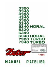 Guide de démontage, remontage et de réparations N° 1/94 des tracteurs Zetor types 3320, 3340, 4320, 4340, 5320, 5340, 5340 HORAL, 6320, 6340, 6340 HORAL, 7320 TURBO, 7340 TURBO. Manuel d'usine exceptionnel par la qualité de son contenu. (268 pages) ________