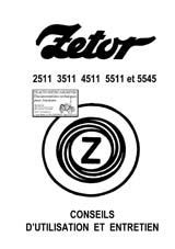 Guide d'utilisation et d'entretien des tracteurs Zetor 2511, 3511, 4511, 5511 et 5545. Caractéristiques, tableau de bord, mise en marche, les vitesses, l'embrayage, le blocage du différentiel, utilisation de la prise de force et de la poulie, relevage hydraulique Zetormatic, modification de la garde du sol et de l'écartement de la voie, utilisation et entretien des freins hydrauliques, entretien et graissage, conseils de rodage, outils portés. (104 pages)