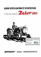 Guide d'utilisation et d'entretien - édition II 5000 de 1964 - des tracteurs Zetor types 2011 équipé du moteur Zetor 2 cylindres 2011 2001, 3011 équipé du moteur Zetor 3 cylindres 3011 3001 (le 3011 étant l'équivalent du 330) et 4011 équipé du moteur Zetor 4 cylindres 4011 4001. Avec schéma de graissage. (116 pages)
