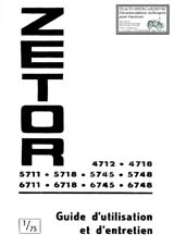 Guide de démontage remontage et de réparations N° 1/86 des tracteurs Zetor types 7711 et 7745.(52 pages) Ce manuel est un complément et est à utilisé conjointement avec le manuel Réf 075 ci dessus. Les Zétor 7711 et 7745 étant une évolution des modèles actuels 5211 - 7245. A cet effet, il faut utiliser également le Manuel d’atelier Z 5211 - 7245. _________