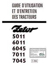 Guide d'utilisation et d'entretien, et carnet de service après vente N° 1/80 des tracteurs Zetor types 5011, 6011, 6045, 7011 et 7045 avec schéma de graissage. (100 pages)