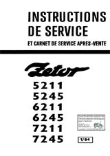 Manuel d'instructions de service et carnet de service après vente N° 1/84 des tracteurs Zetor types 5211, 5245, 6211, 6245, 7211 et 7245, avec schémas de graissage et électrique. (150 pages)