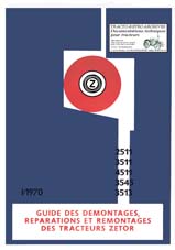 Guide de démontage, remontage et de réparations N° 1/1970 des tracteurs Zetor types 2511, 3511, 4511, 3545 et 3513. Démontage et remontage du moteur et de tous les éléments qui composent le tracteur, schéma électrique en couleur, manuel d'usine exceptionnel par la qualité de son contenu. Sauf relevage hydraulique Zetormatic. Pour ce dernier, voir notre réf. 180. (150 pages)