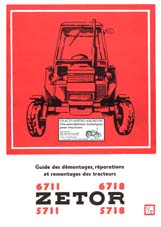 Guide de démontage remontage et de réparations, manuel d'usine N° 1/72 des tracteurs Zetor types 6711, 6718, 5711 et 5718. Démontage et remontage du moteur et de tous les éléments qui composent le tracteur. Sauf le relevage hydraulique Zetormatic, voir référence Zetor 180. (110 pages) ________