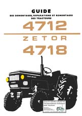 Guide de démontage remontage et de réparations N° 1/78 des tracteurs Zetor types 4712, 4718, 5711, 5718, 5745, 5748, 9711, 6718, 6745 et 6748. Démontage et remontage du moteur et de tous les éléments qui composent le tracteur, manuel d'usine exceptionnel par la qualité de son contenu. (128 pages)